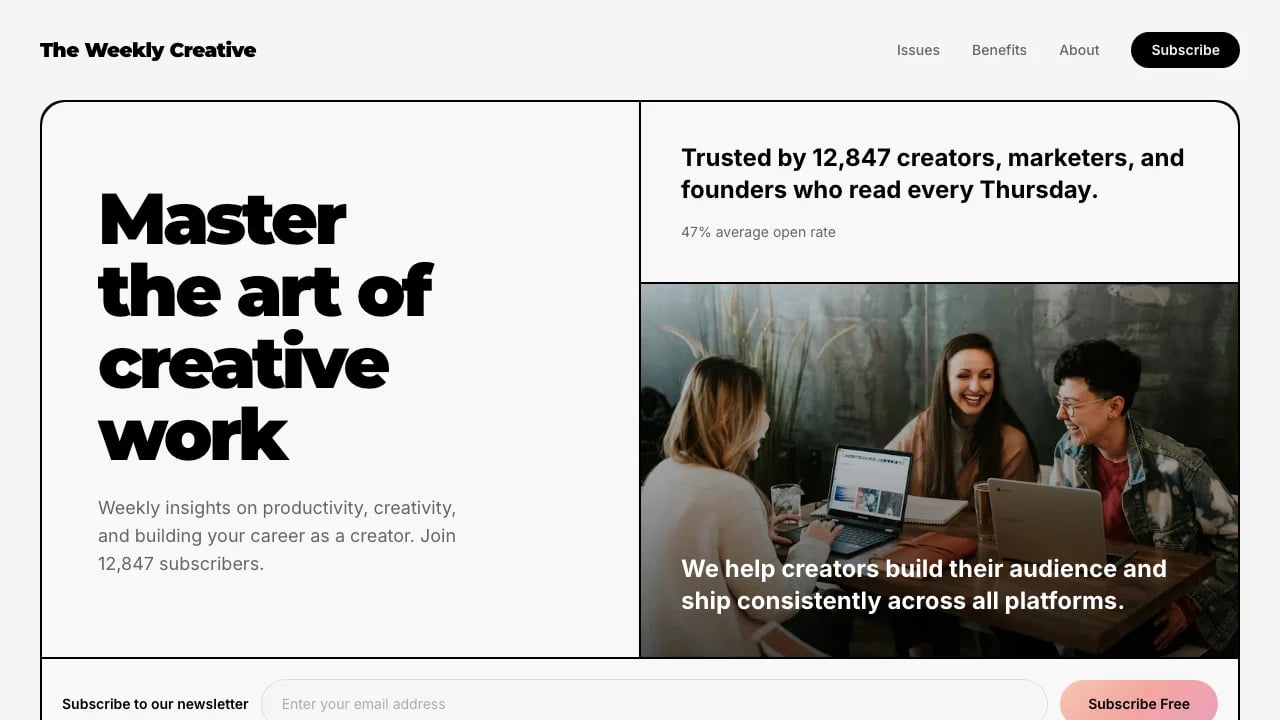 Inkwell - Newsletter Landing Page for Creators Template